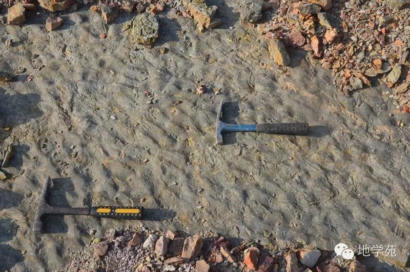 (十一)武漢地區(qū)下志留統(tǒng)墳頭組內(nèi)的波痕現(xiàn)象,已經(jīng)表面的遺跡化石。
