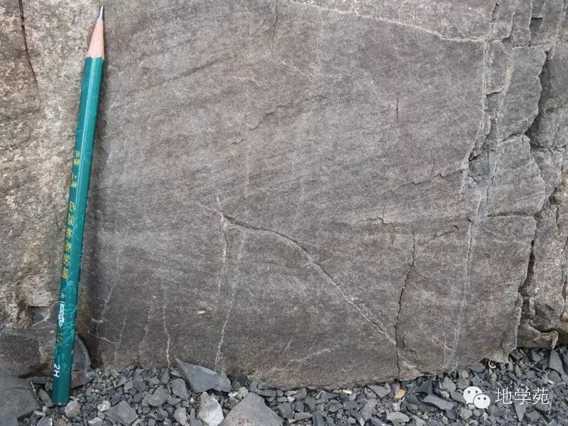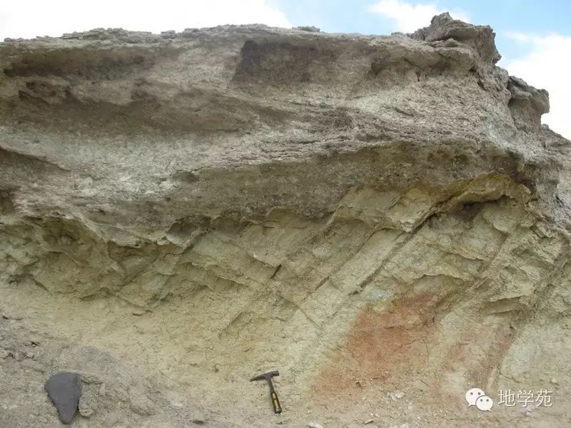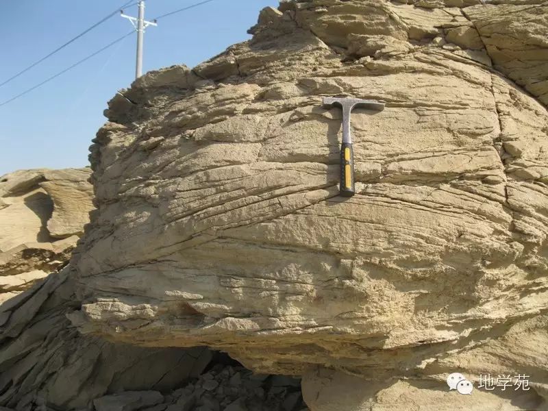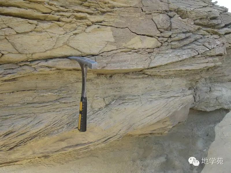 (三十四)西準(zhǔn)噶爾晚石炭世陸相細砂巖中的羽狀交錯層理,代表水流方向發(fā)生了改變。