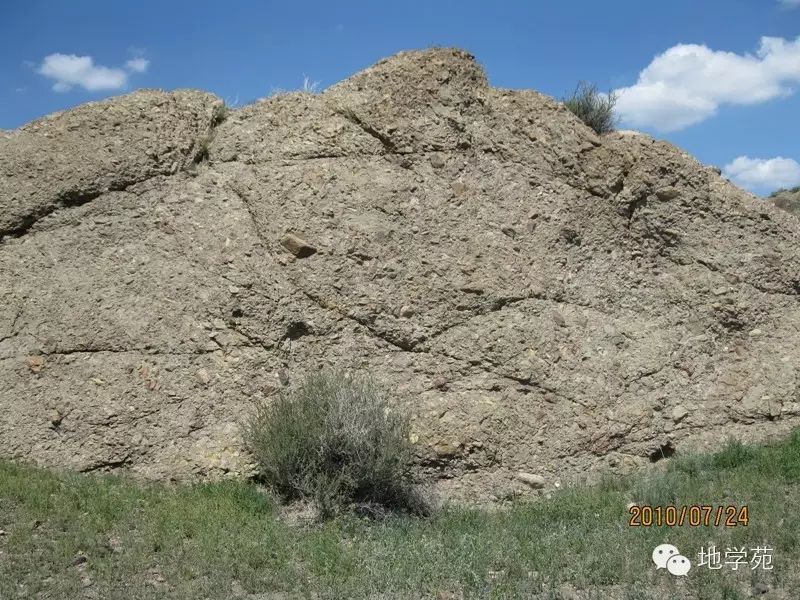 (十八)角度不整合現(xiàn)象--下部傾向照片左側(cè)的巖層為石炭系的粉砂巖,上部近水平的為白堊系的砂礫巖,攝于西準(zhǔn)噶爾。