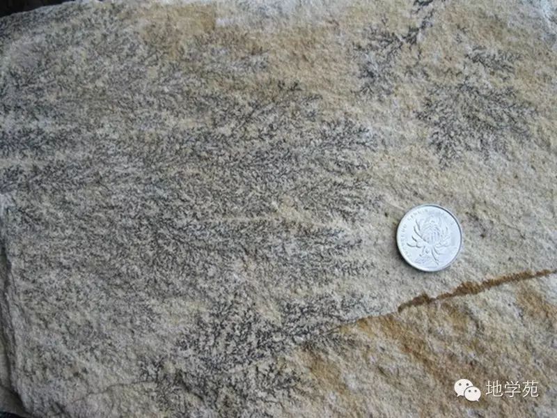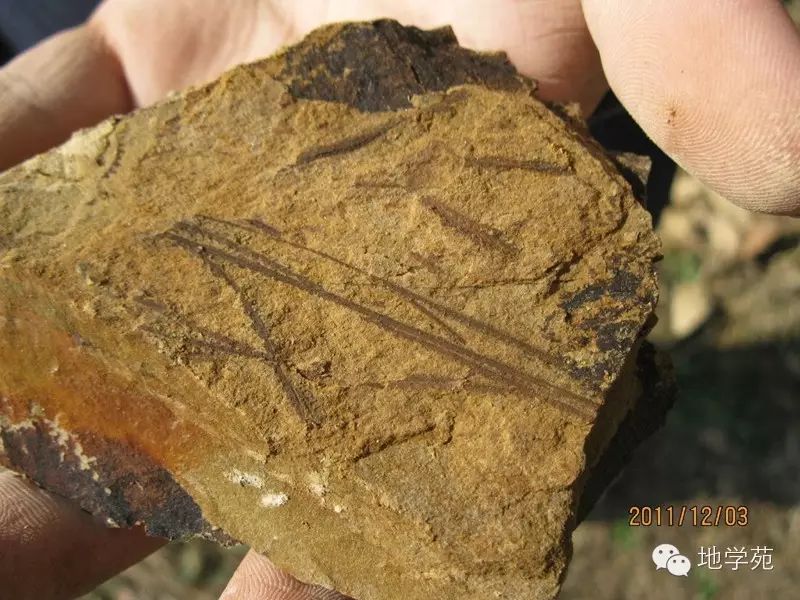 (四十七)湖北南部早志留世粉砂巖中的筆石化石。