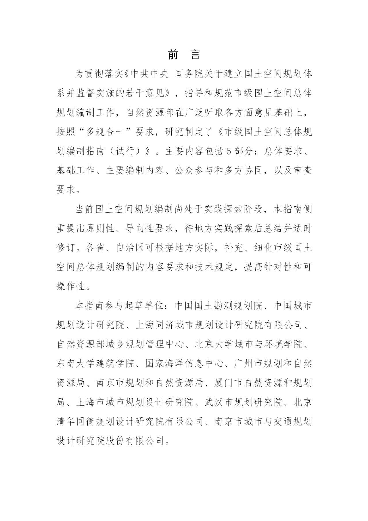 市級國土空間總體規(guī)劃編制指南(試行)