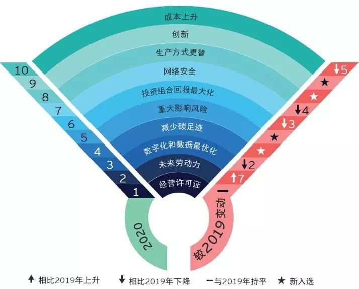 今年,出現(xiàn)了四個新風險:減少碳足跡、重大影響風險、生產(chǎn)方式更替和創(chuàng)新。