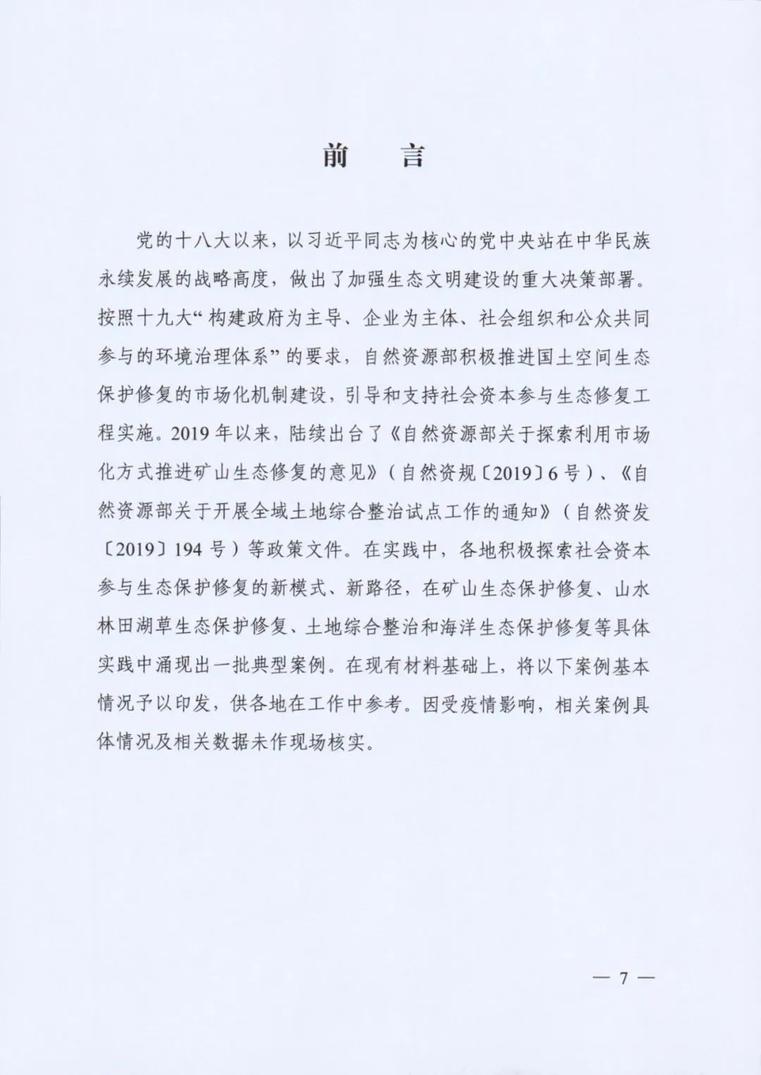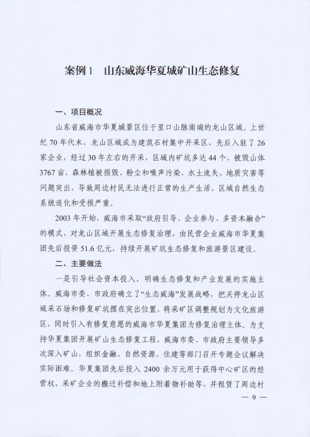 自然資源部印發(fā)《社會(huì)資本參與國(guó)土空間生態(tài)修復(fù)案例(第一批)》(附全文)