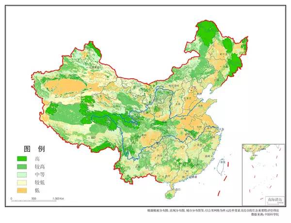 中國(guó)東部地區(qū)、及西部荒漠地區(qū)生態(tài)重要性較低,西部高原及未開(kāi)發(fā)地帶,東北地區(qū)森林資源豐富,生態(tài)重要性較高。中國(guó)生態(tài)環(huán)境的基本狀況是:總體在惡化,局部在改善,治理能力遠(yuǎn)遠(yuǎn)趕不上破壞速度,生態(tài)赤字逐漸擴(kuò)大。