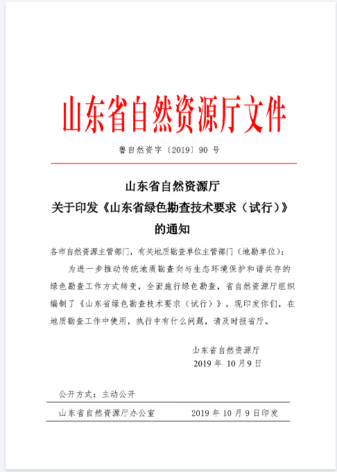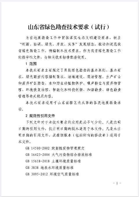 《山東省綠色勘查技術(shù)要求(試行)》
